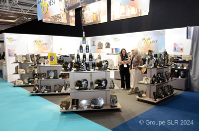 BG : GRANIT OUEST a mis en avant l’ampleur de sa collection, affirmant son statut de fournisseur de référence au niveau national dans le domaine de la plaque funéraire. Son identité forte de fabricant français, travaillant principalement le granit, a été particulièrement appréciée pour la valeur traditionnelle de cette matière, alliée à des designs résolument actuels. L’originalité des boules en verre avec motifs 3D imprimés en intérieur a suscité un vif intérêt, tout comme la qualité de ses photogravures, témoignant d’un savoir-faire reconnu.