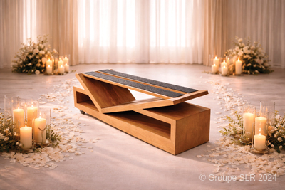 Le dernier envoi met notamment en avant un nouveau modèle de catafalque proposé au catalogue : "Ce catafalque peut être utilisé en salon funéraire, pour le transport, mais également en salle de cérémonie. Il évite ainsi de multiplier les équipements, ce qui représente un gain de temps et améliore le confort de travail des équipes, grâce à un nombre réduit de manipulations".